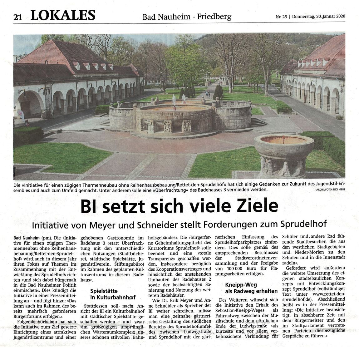Im Übrigen werden wir unsere an dieser Stelle, in der Presse und auf unserer Homepage mehrfach dargestellten Ziele für 2020/2021 auch im kommenden Jahr konsequent weiterverfolgen, soweit sie nicht bereits erreicht wurden. Um ständig auf dem Laufenden zu bleiben, schauen sie bitte ab und zu in unsere Homepage www.rettet-den-sprudelhof.de!